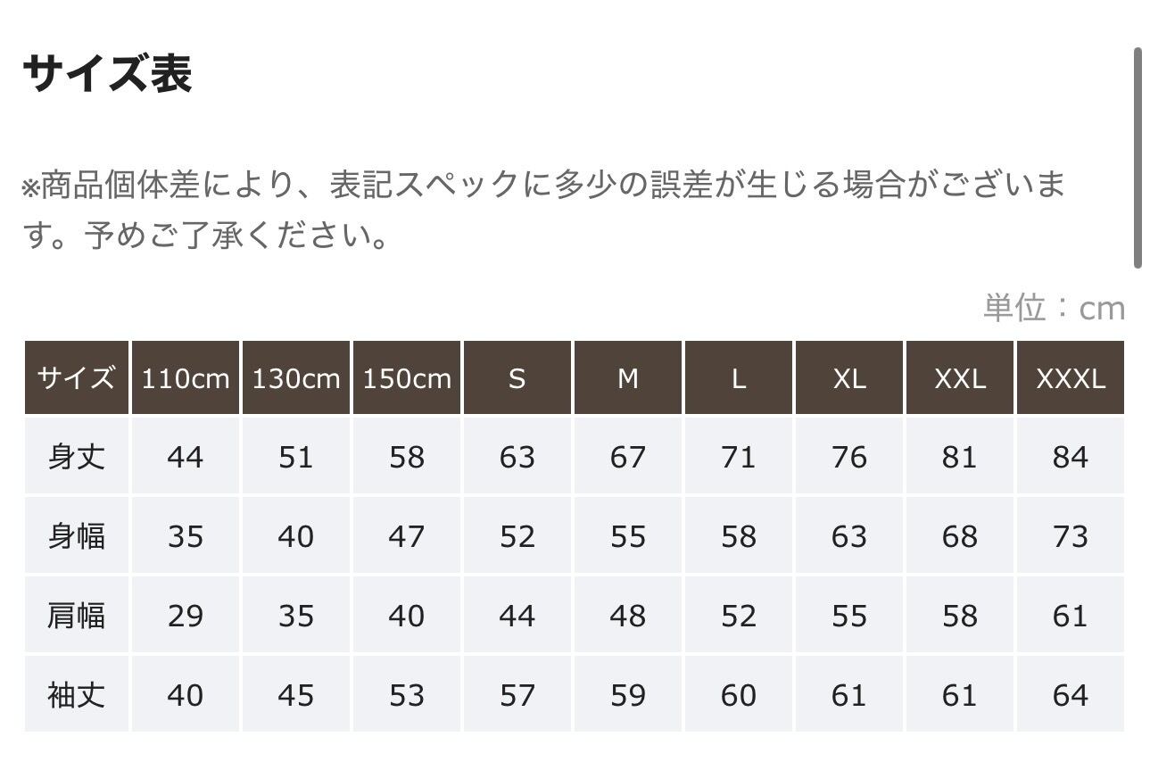 サイズ 110cm-XXXL